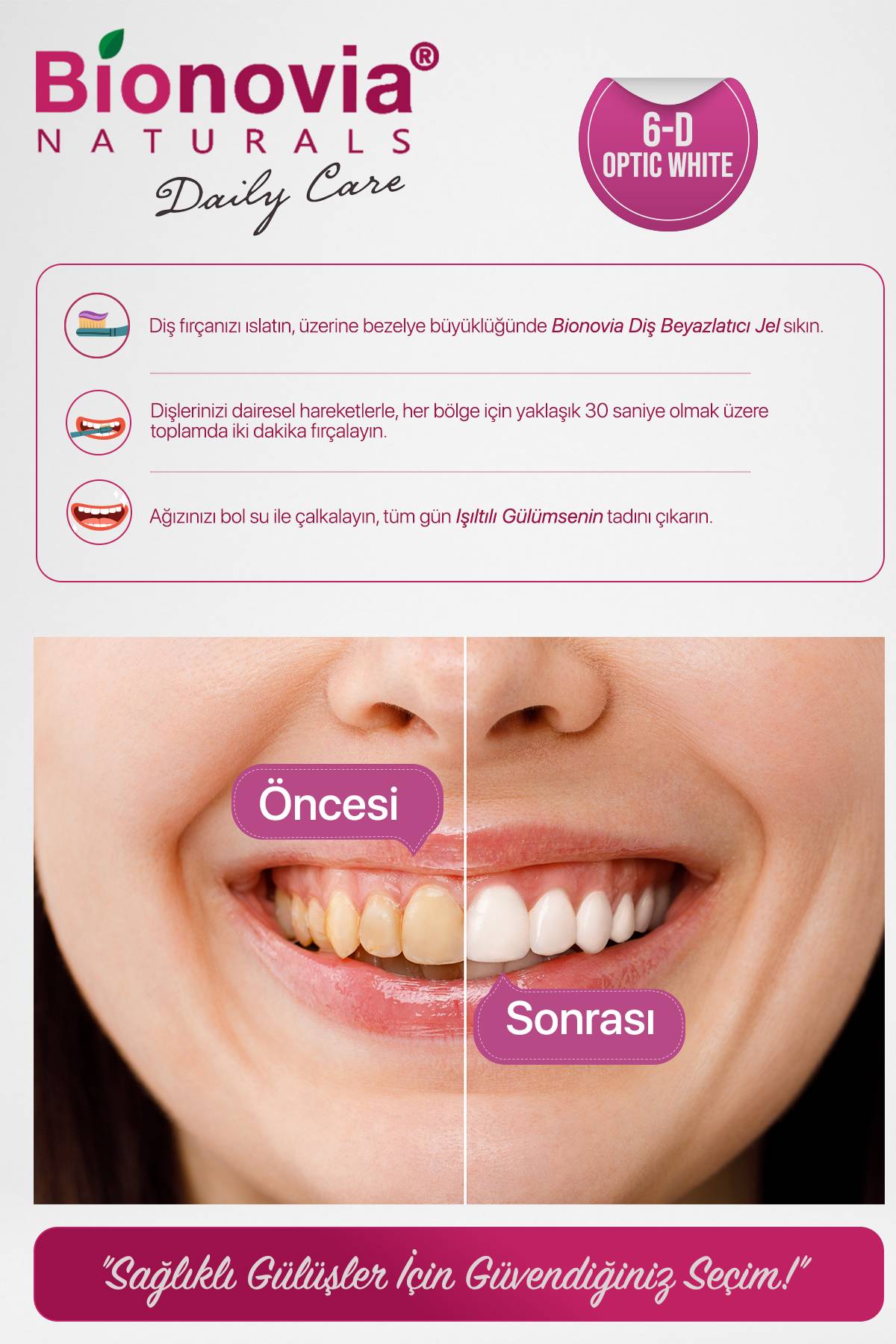 Yeni Nesil Diş Bakımı: Dişlerinize zarar vermeden etkili beyazlık sağlar ve ağzınızı ferahlatır. Şimdi, mükemmel bir gülüşe sahip olmanın tam zamanı!
